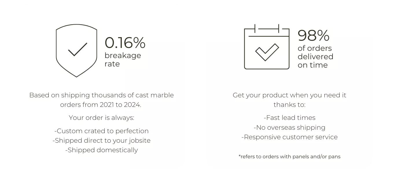 Don't risk the success of your project. All Mincey cast marble surrounds and pans are made in USA for the best quality, fast lead times, and responsive customer service.